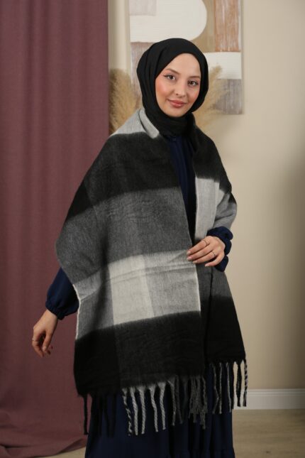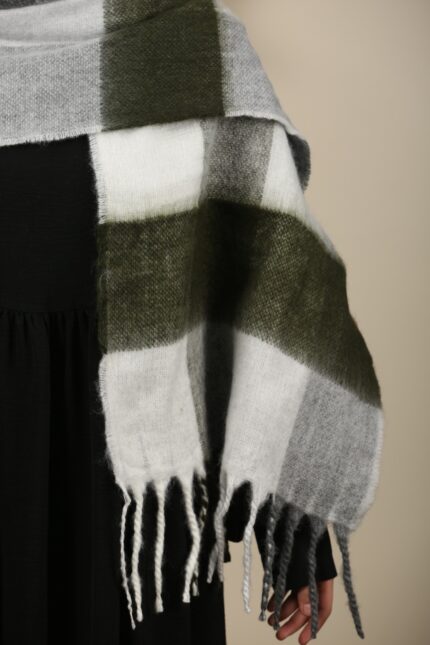 Çift Taraflı Ekose Kışlık Omuz Şalı