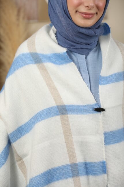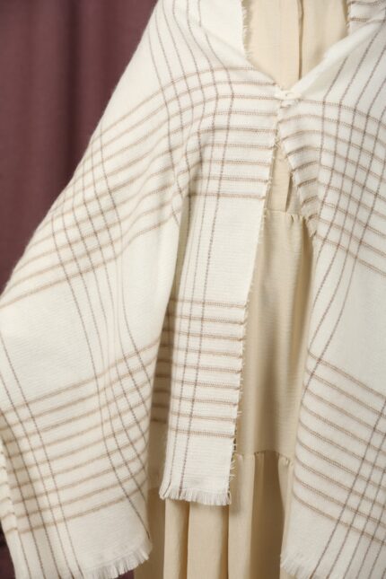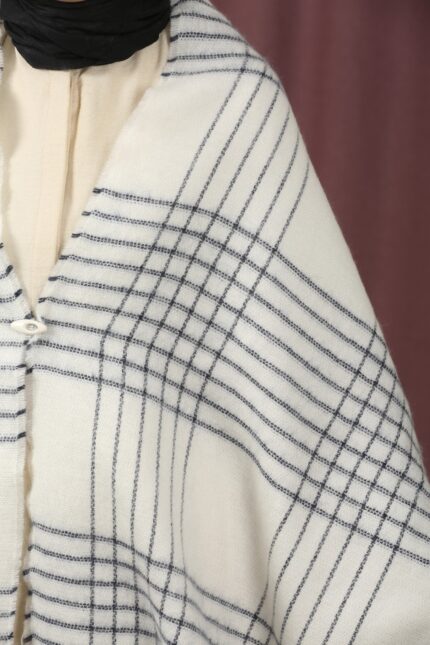 Çift Taraflı Çizgili Ekose Omuz Şalı