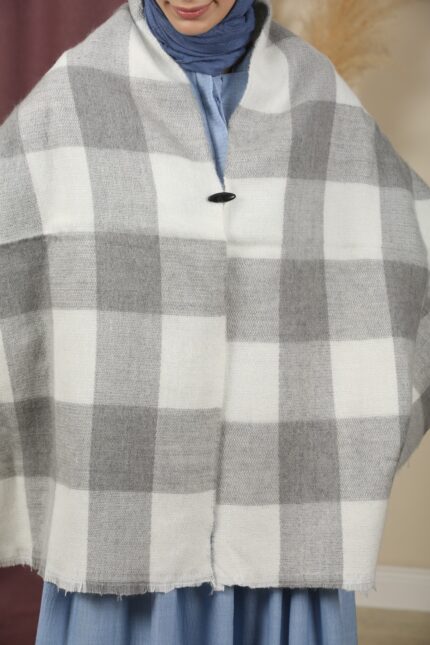 Çift Taraflı Ekose Kışlık Omuz Şalı
