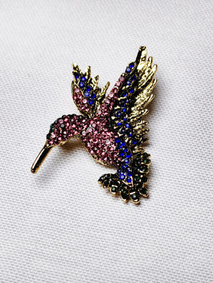Renkli Taşlı Kuş Figürlü Broş – Zarif Aksesuar