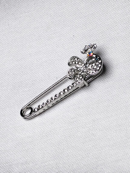 Taş Süslemeli Fiyonk Detaylı Gümüş Renk Çengelli İğne Broş