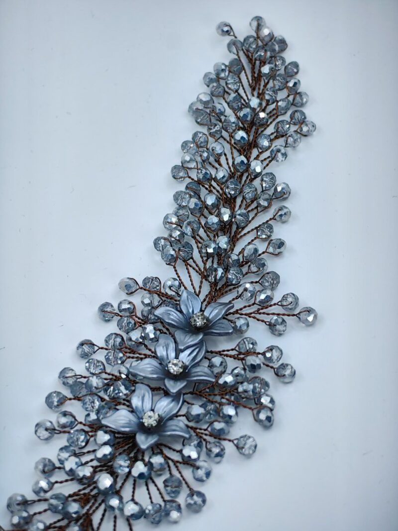 Bu aksesuar, düğün gününüzde saçınızı tamamlarken aynı zamanda gelinliğinizle mükemmel bir uyum sağlar. Çiçek motifleri ve parıltılı kristalleriyle romantik bir hava yaratır, size özel gününüzde prenses gibi hissettirir.