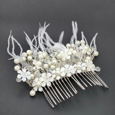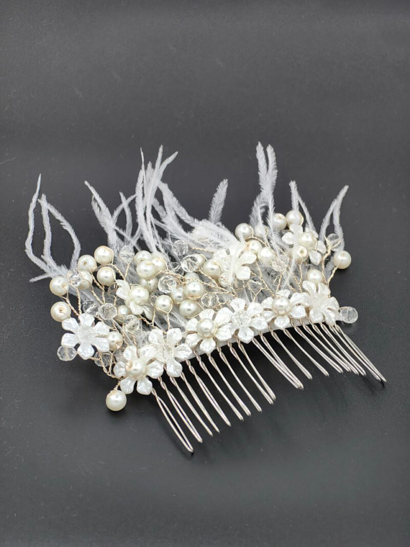 Bu aksesuar, düğün gününüzde saçınızı tamamlarken aynı zamanda gelinliğinizle mükemmel bir uyum sağlar. Çiçek motifleri ve parıltılı kristalleriyle romantik bir hava yaratır, size özel gününüzde prenses gibi hissettirir.