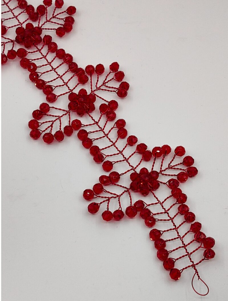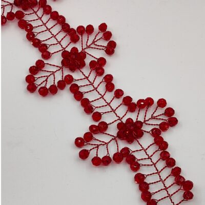 Malzeme: Yüksek kaliteli boncuklar, kristaller ve çiçek motifleriyle işlenmiş, zarif ve dayanıklı malzemeler kullanılmıştır.