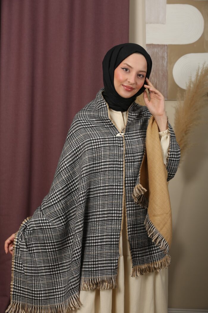 Hem klasik hem de modern giyim tarzına uyum sağlayan bu şal, farklı kombinlerde çok yönlü bir kullanım sunar.