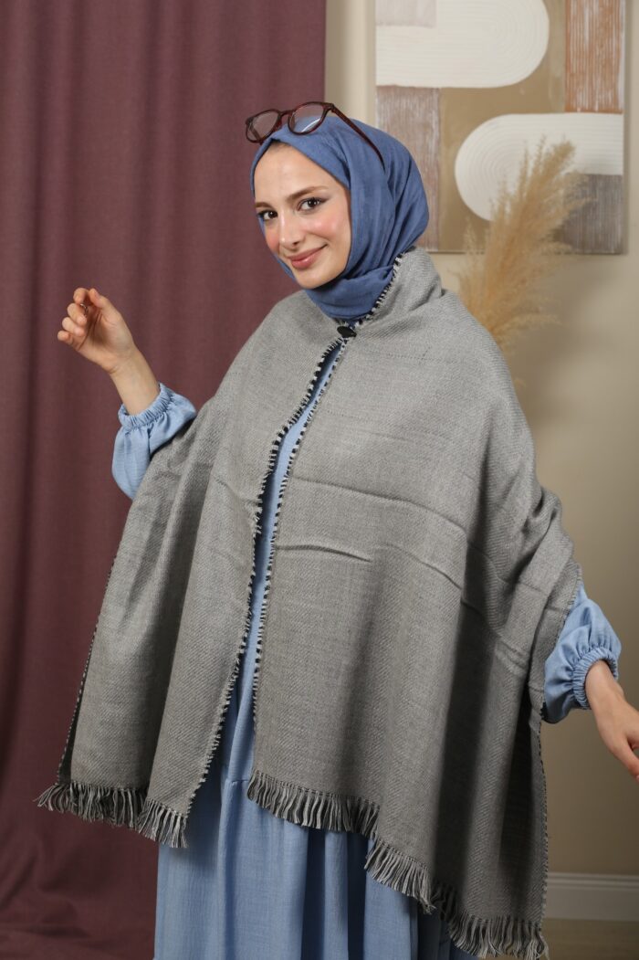 Hem klasik hem de modern giyim tarzına uyum sağlayan bu şal, farklı kombinlerde çok yönlü bir kullanım sunar.
