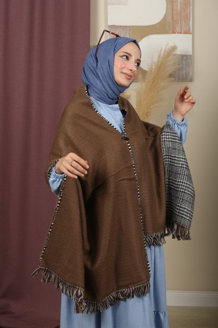 Hem klasik hem de modern giyim tarzına uyum sağlayan bu şal, farklı kombinlerde çok yönlü bir kullanım sunar.
