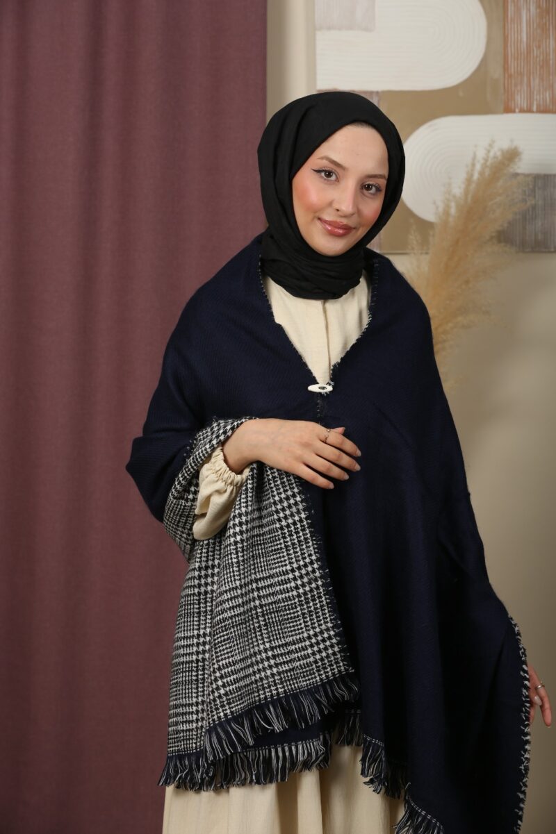 Hem klasik hem de modern giyim tarzına uyum sağlayan bu şal, farklı kombinlerde çok yönlü bir kullanım sunar.