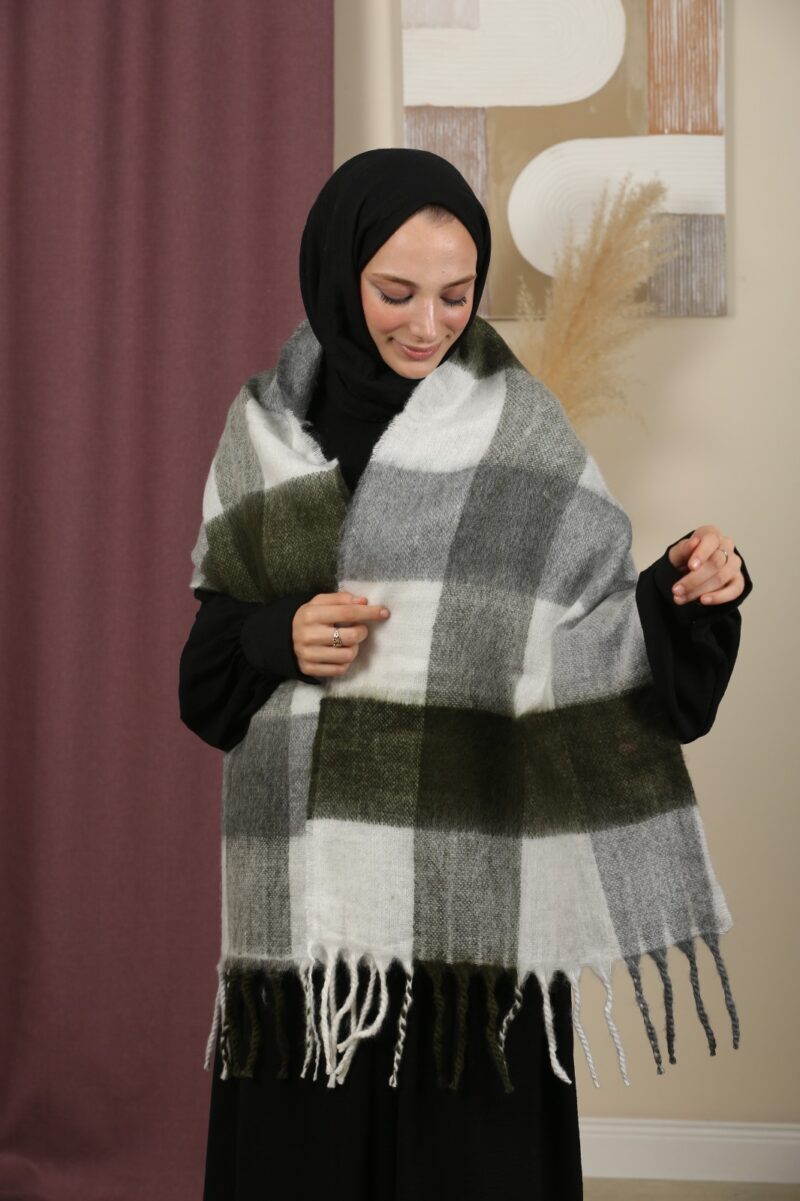 Çift Taraflı Ekose Kışlık Omuz Şalı