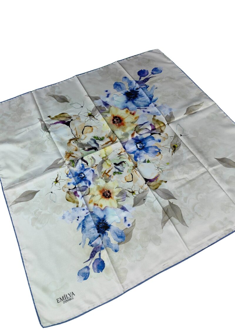 Emilya’nın zarif dokunuşuyla tasarlanan bu 90×90 cm ölçülerindeki rayon eşarp, buz mavisi zemin üzerindeki su desenli çiçek motifleriyle stilinize sofistike bir hava katar. Hafif ve dökümlü kumaşı sayesinde dört mevsim kullanıma uygundur. Günlük kombinlerden özel davetlere kadar her ortamda şıklığınızı tamamlar. Saçta kayma yapmaz, kolay şekil alır.