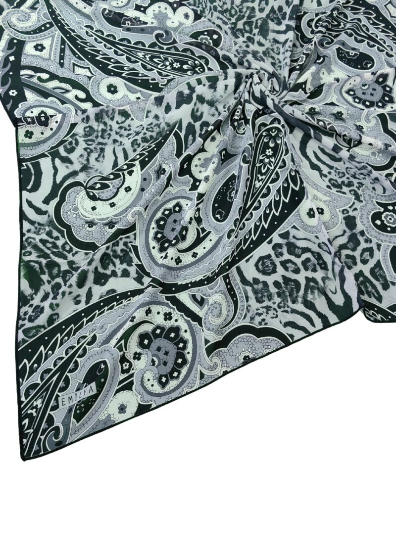 Emilya’nın özel koleksiyonundan 90×90 cm ölçüsündeki bu krep kumaş eşarp; zebra ve leopar desenleriyle dikkat çeker. Yumuşak dokusu sayesinde konforlu kullanım sunarken, desen detayları modern ve zarif bir stil kazandırır. Günlük kombinlerden özel davetlere kadar her ortamda şıklığınızı tamamlar. Ütü gerektirmeyen yapısı sayesinde pratik kullanım sağlar.
