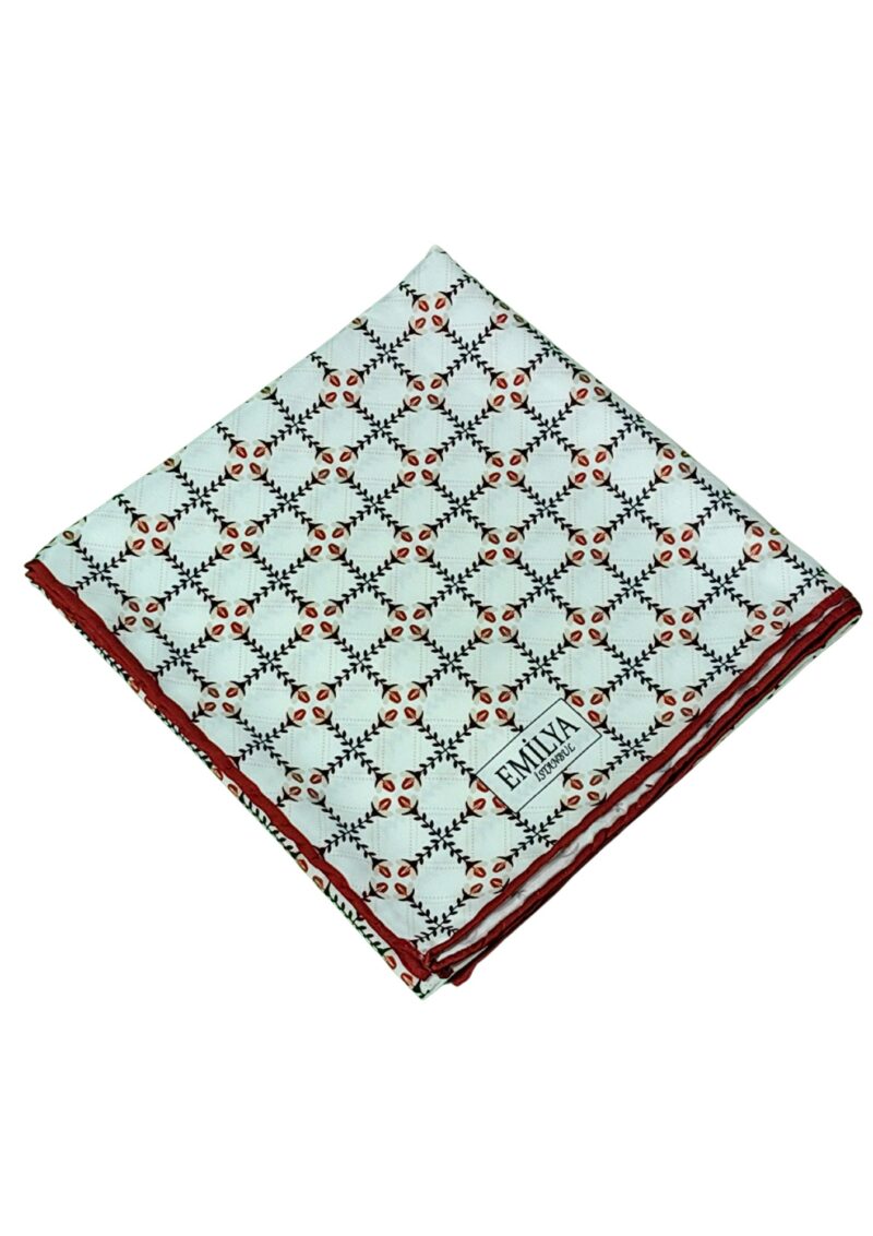 Emilya’nın zarif dokunuşuyla tasarlanan bu 90×90 cm ölçülerindeki rayon eşarp, buz mavisi zemin üzerindeki desenlerle stilinize sofistike bir hava katar. Hafif ve dökümlü kumaşı sayesinde dört mevsim kullanıma uygundur. Günlük kombinlerden özel davetlere kadar her ortamda şıklığınızı tamamlar. Saçta kayma yapmaz, kolay şekil alır.