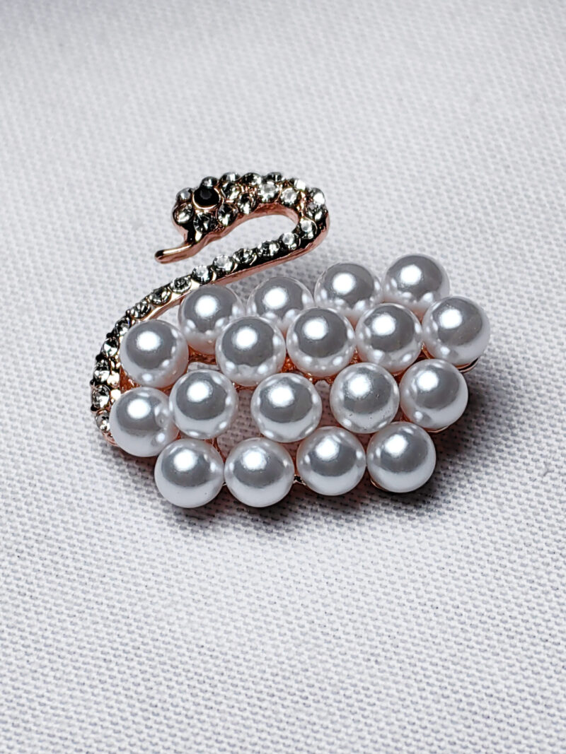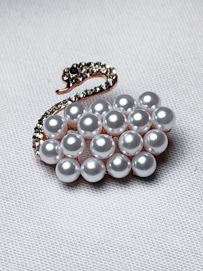İnci Detaylı Kuğu Figürlü Broş – Zarif Kadın Aksesuarı