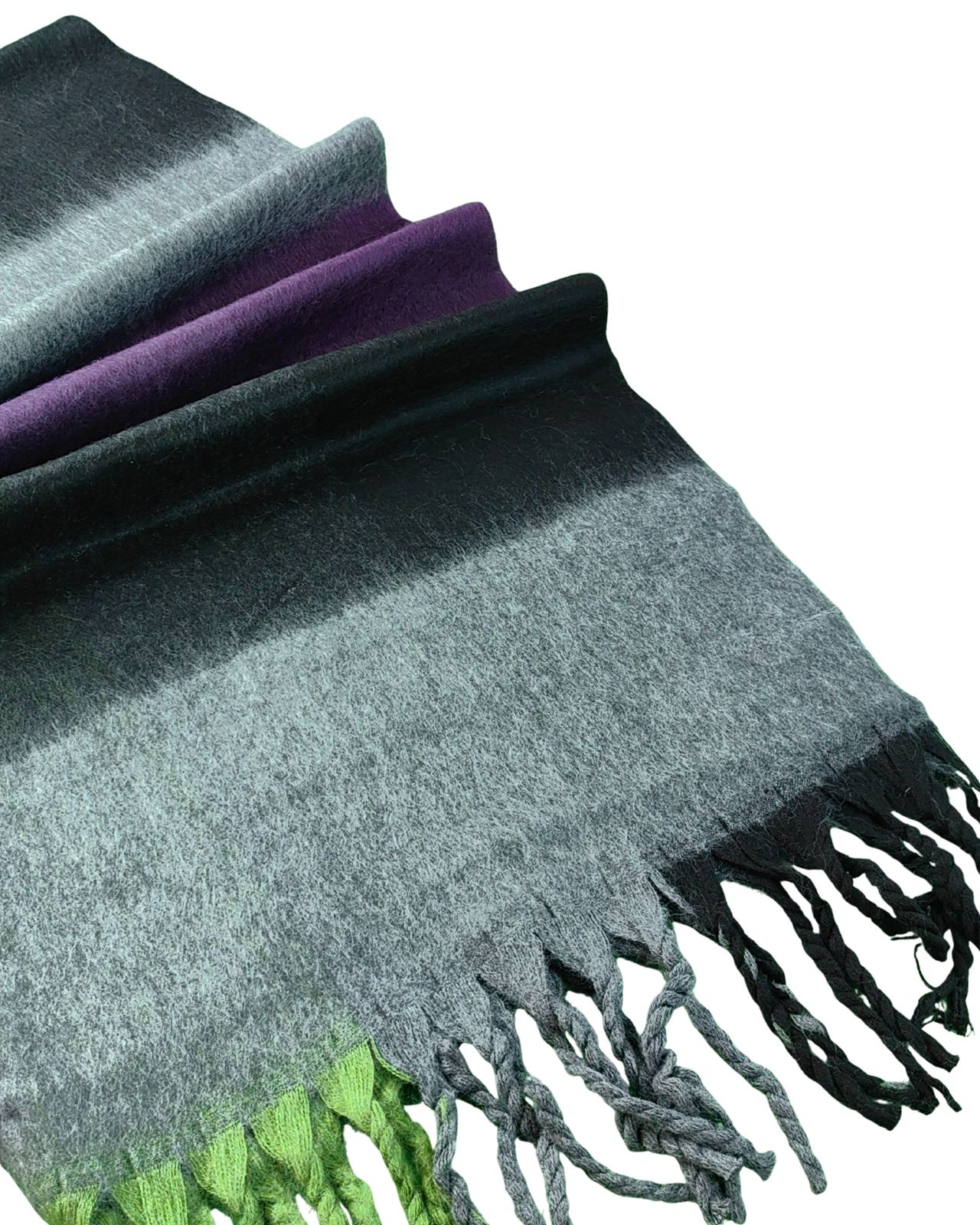 Saçak detayları şala zarif bir görünüm kazandırırken, dökümlü formu başta ve omuzda kolay şekil alır.