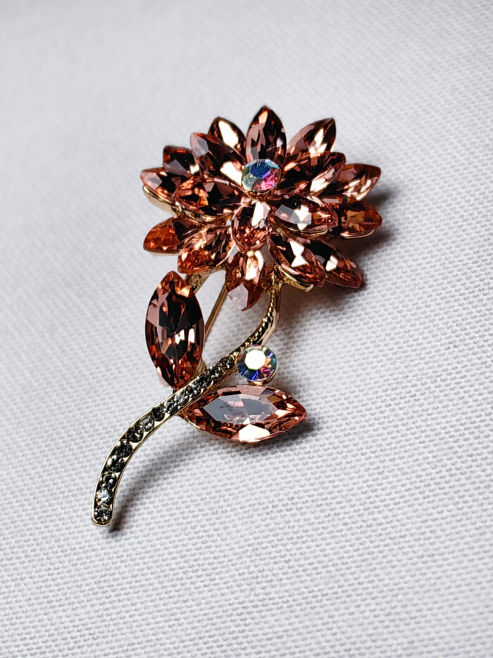 Kristal Taşlı Bronz Çiçek Figürlü Broş – Şık Kadın Aksesuarı