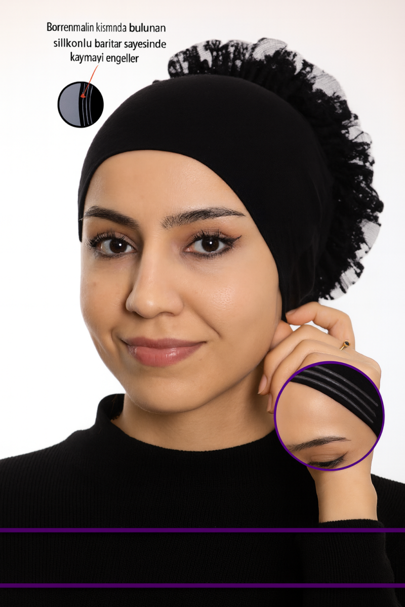 Mim Eşarp Slikonlu Kaymaz Dikişsiz Fırfırlı Bone