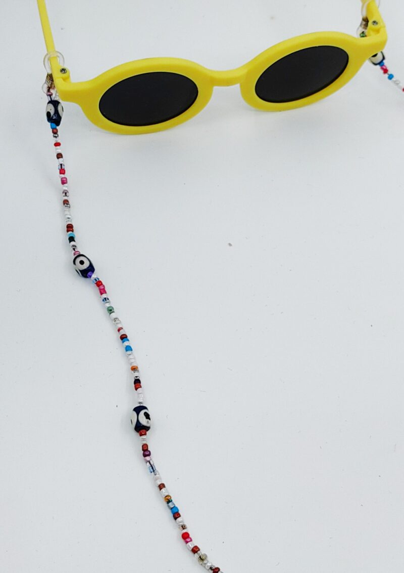 Çocukların gözlüklerini düşürmeden, kaybetmeden ve stil sahibi şekilde kullanmalarını sağlayan bu renkli boncuklu gözlük zinciri, minikler için hem eğlenceli hem de pratik bir aksesuardır.