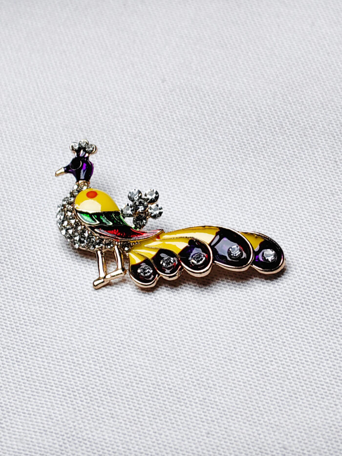 Renkli Taşlı Tavus Kuşu Figürlü Broş – Zarif Kadın Aksesuarı