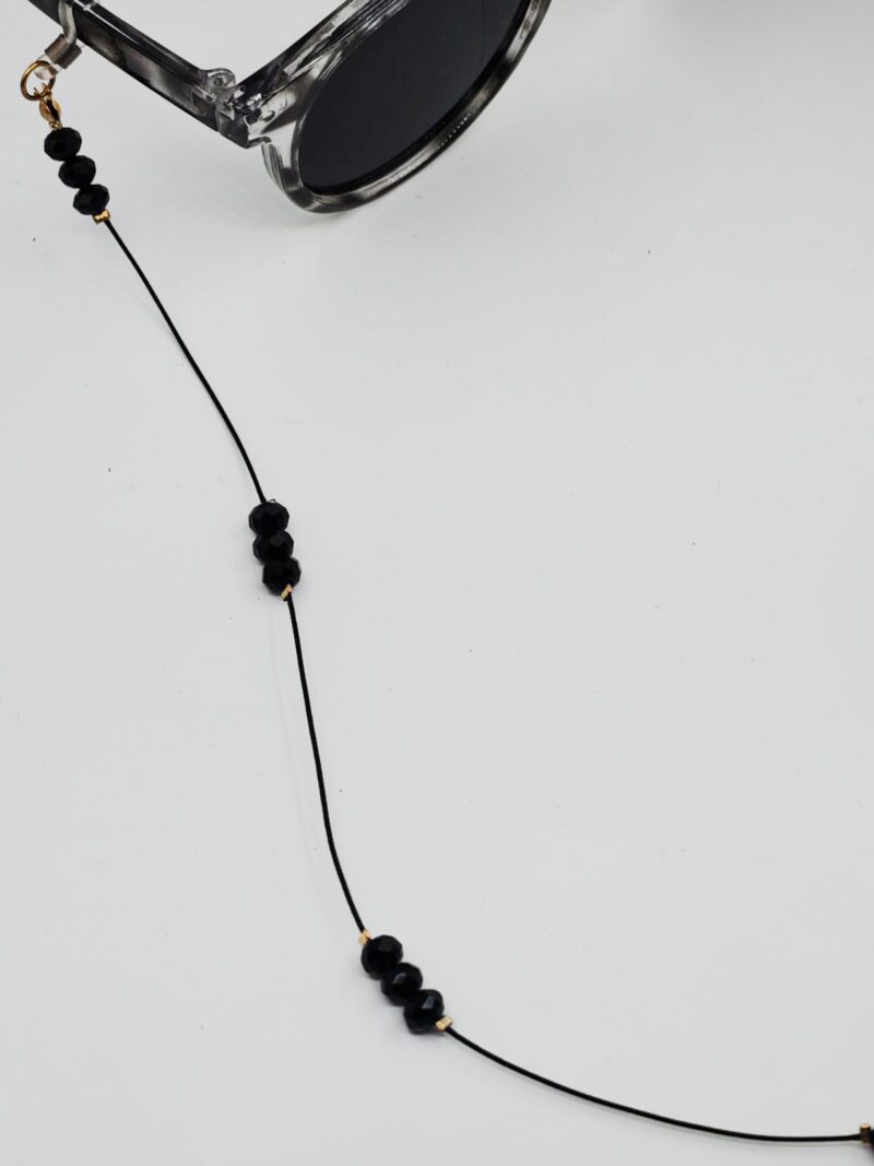 Altın renkli ince zinciri ve aralıklı parlak boncuk detaylarıyla tasarlanmış bu gözlük askısı, hem fonksiyonel hem de estetik bir tamamlayıcıdır.
